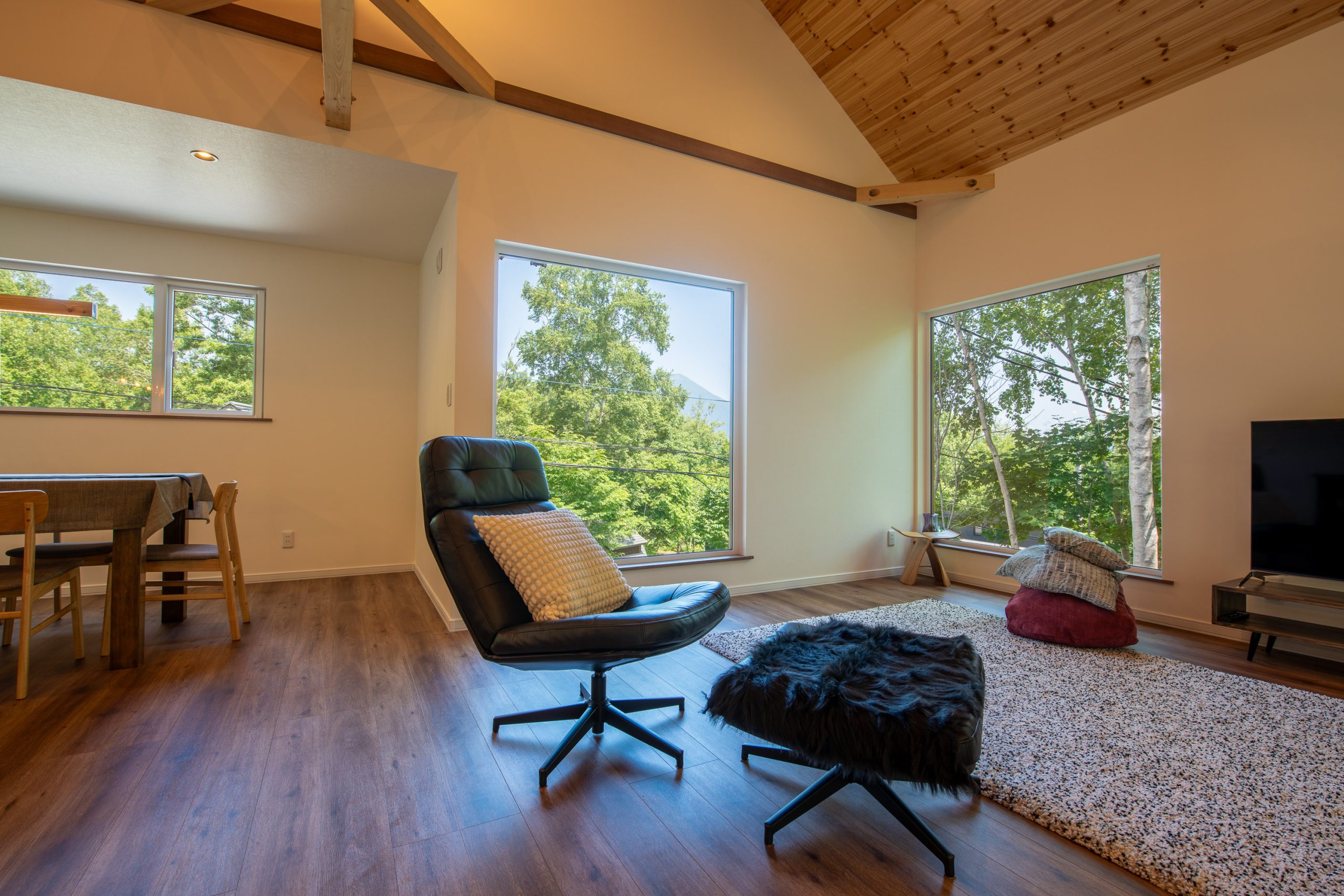 Built to withstand Niseko’s winter conditions, the home features engineered siding, a metal roof, and durable fascias. Thoughtful planning and clever use of the site’s limitations result in a home that feels larger, brighter, and perfectly tailored to its setting.